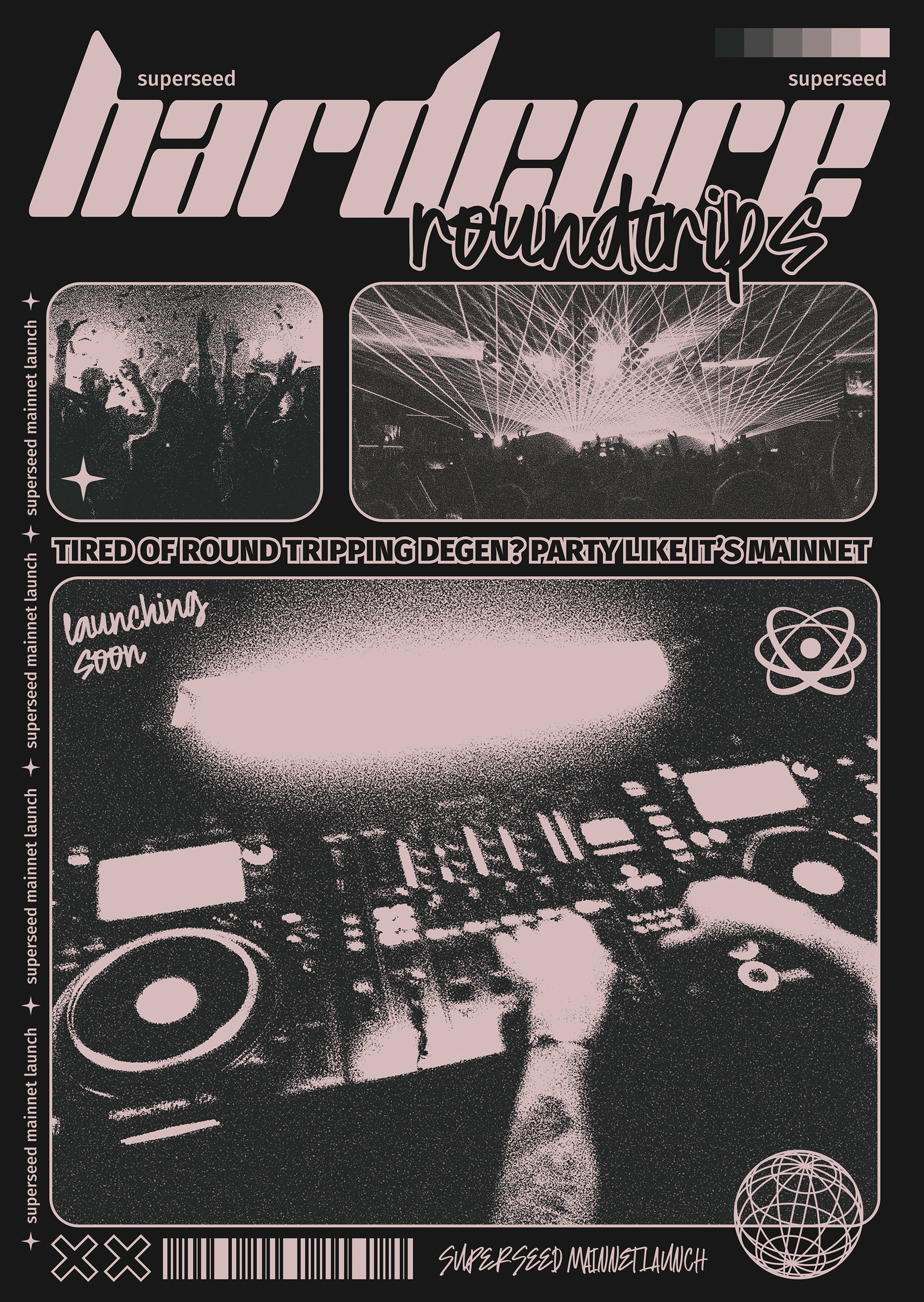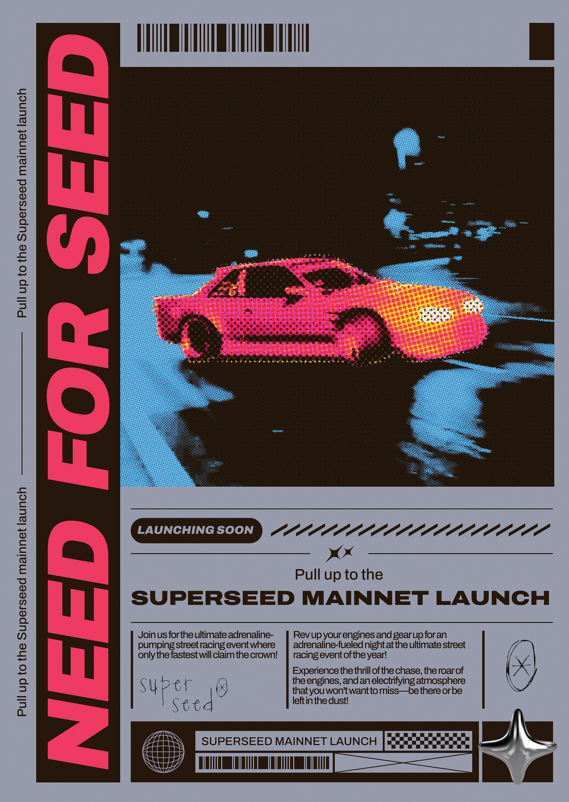 Superseed is a crypto currency that pays off users' debt. After months of farming (think of this as a beta period) they were finally about to launch their mainnet (main product release) and needed to get the word out. So we invited the whole crypto community to participate through a social film and series of posters.
